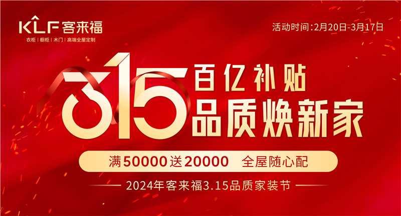2024年是客來福的創(chuàng)新增長(zhǎng)年,龍年新年來,客來?!鞍賰|補(bǔ)貼 品質(zhì)煥新家”3.15品質(zhì)家裝節(jié)全國(guó)聯(lián)動(dòng),以滿5萬送2萬全屋隨心配套餐、實(shí)木水漆套餐、全屋空間套餐來守護(hù)更多家庭的幸福。