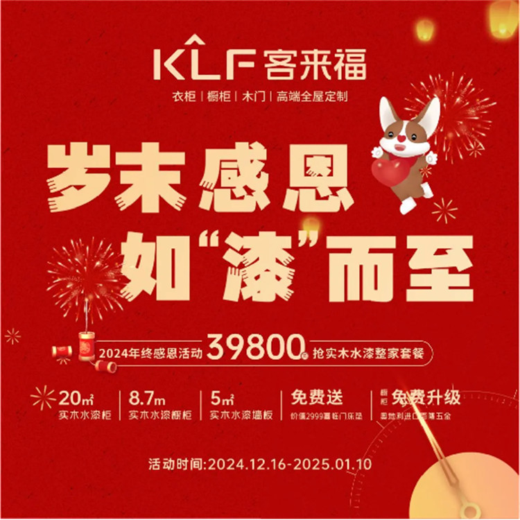 實(shí)木水漆,整家煥新。即日起至2025年1月10日,客來福家居聯(lián)動(dòng)全國百城千家門店,共同開啟“2024年終感恩”全民狂歡活動(dòng),為家居品質(zhì)升級(jí),環(huán)保升級(jí),舒適升級(jí)。