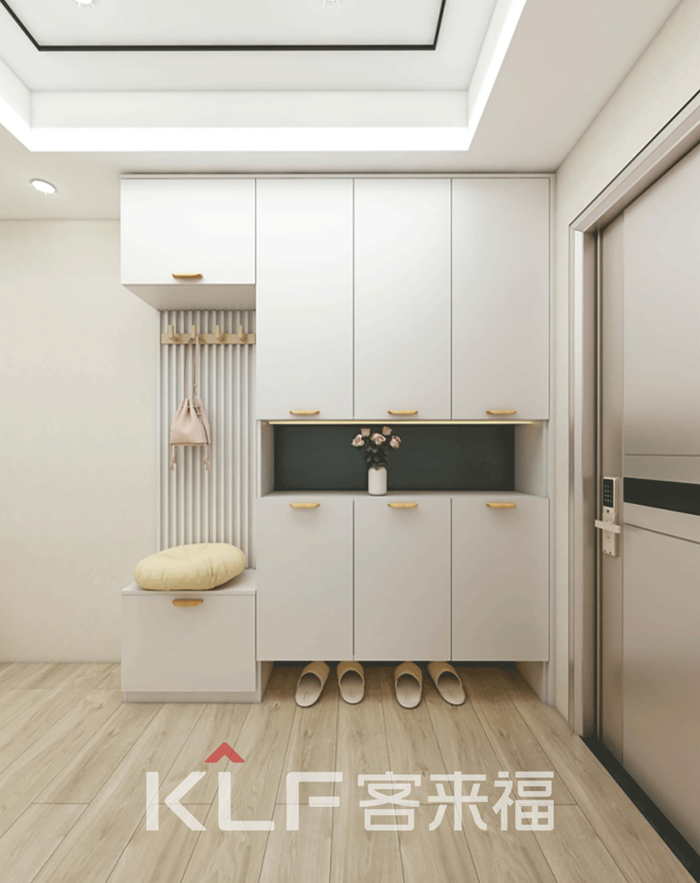 我們按照屋主人的喜好,采用了簡潔現(xiàn)代的裝修風(fēng)格,整體以黑白灰為基礎(chǔ)色,風(fēng)格樣式不會輕易過時。入戶、客餐廳、陽臺我們將其連成了一個整體,光可以直射進來,讓客廳看起來更加明亮。入戶柜的設(shè)計簡潔大方,原木色的柜體搭配金屬把手,簡單而不失內(nèi)涵。中空和下空式設(shè)計,讓鞋物包包更加方便拿取。我們還貼心的為屋主人設(shè)置了一個換鞋的地方,讓本身不太明顯的入戶柜獨具風(fēng)格。