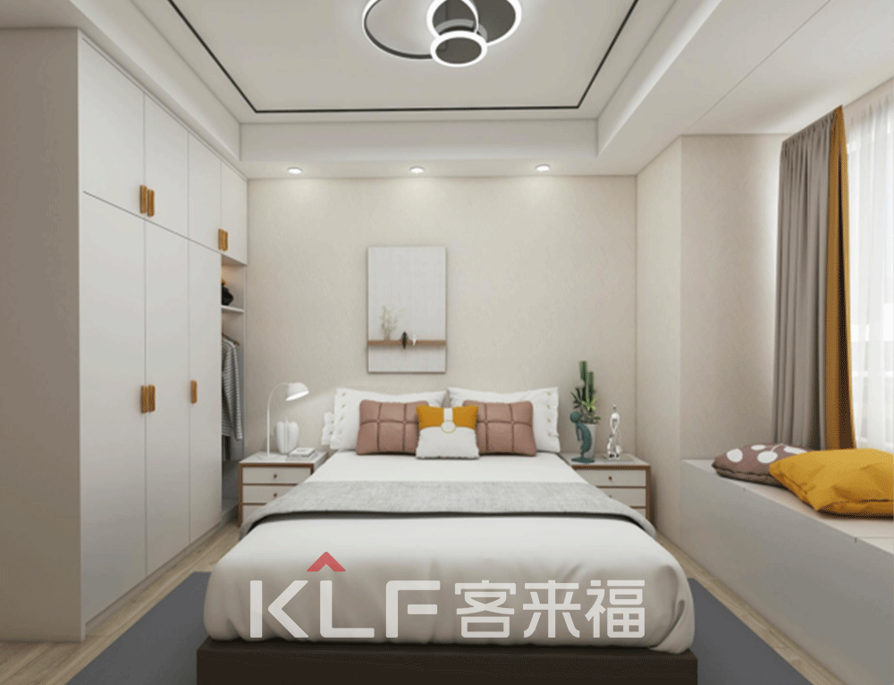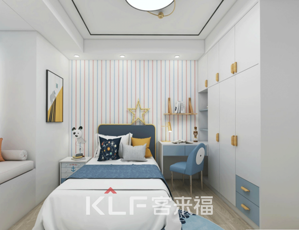 看完客廳往更深處來就是夫妻二人的主臥,以及兒童房了。主臥中冷色調(diào)以及暖色調(diào)的搭配,使得房間看起來更加溫馨,因為房間內(nèi)有一個大轉(zhuǎn)角,所以我們用整體式衣柜設(shè)計,將這個轉(zhuǎn)角藏了起來。但也因禍得福,讓房間更具有空間的美感,同時還增加了收納空間。兒童房的設(shè)計采用了簡潔的童話風(fēng),讓房間內(nèi)的色彩更加豐富,活潑鮮艷。