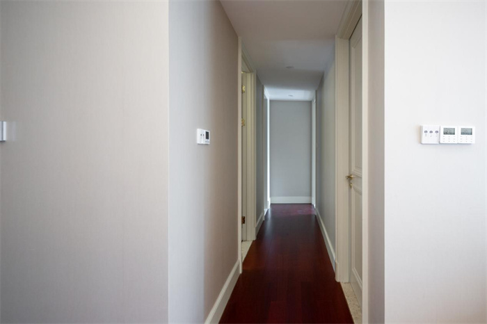 走廊中間空間相對(duì)較窄,在走廊盡頭為主臥和儲(chǔ)物間,若想要增加空間內(nèi)的豐富性,可以在走廊盡頭加上一幅掛畫(huà),使色彩更為豐富。