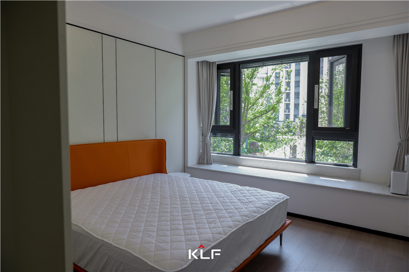 為了讓臥室沿襲客廳的通透自然感,在飄窗處并沒有設(shè)計柜子等造型,而是在左側(cè)以到頂高柜進行臥室收納,芬蘭白以淺色系拉遠視覺距離,整體更清爽。衣柜內(nèi)分區(qū)合理,使用起來也是得心應(yīng)手。