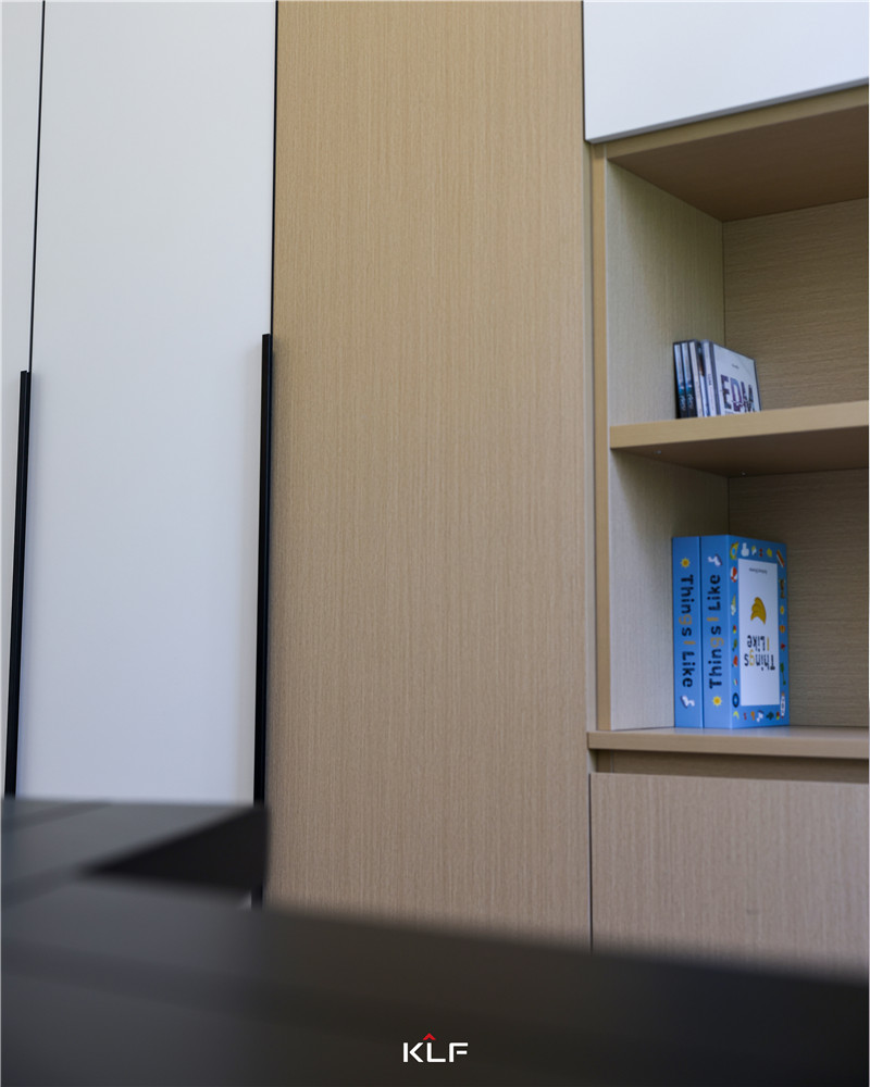 整體高柜在配色上都以簡為核心,在工藝上則精益求精,無論是封邊還是拉手,這些細節(jié)的打磨都為整體的質(zhì)感而加分。