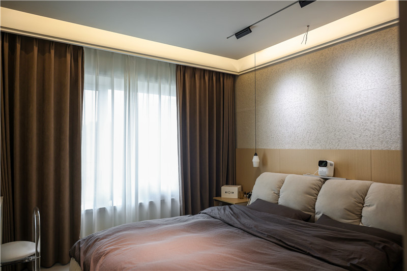 主臥床頭背景墻是這個(gè)房間的亮點(diǎn)