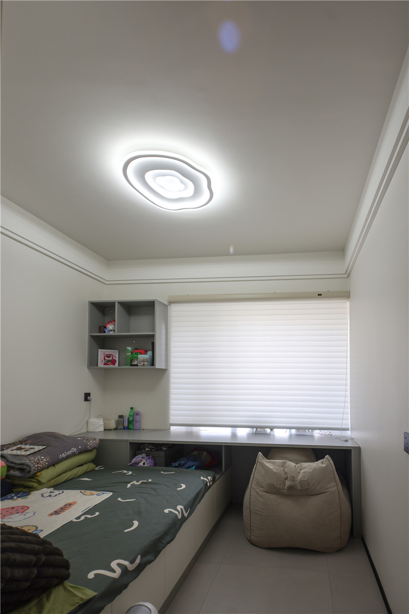 次臥空間與兒童房都在睡眠區(qū)+收納區(qū)的基礎(chǔ)上各自增設(shè)人性化定制的家居產(chǎn)品,例如兒童房中在床尾設(shè)計(jì)的長(zhǎng)書(shū)桌以及壁掛式收納格,讓整個(gè)房間功能更為豐富。