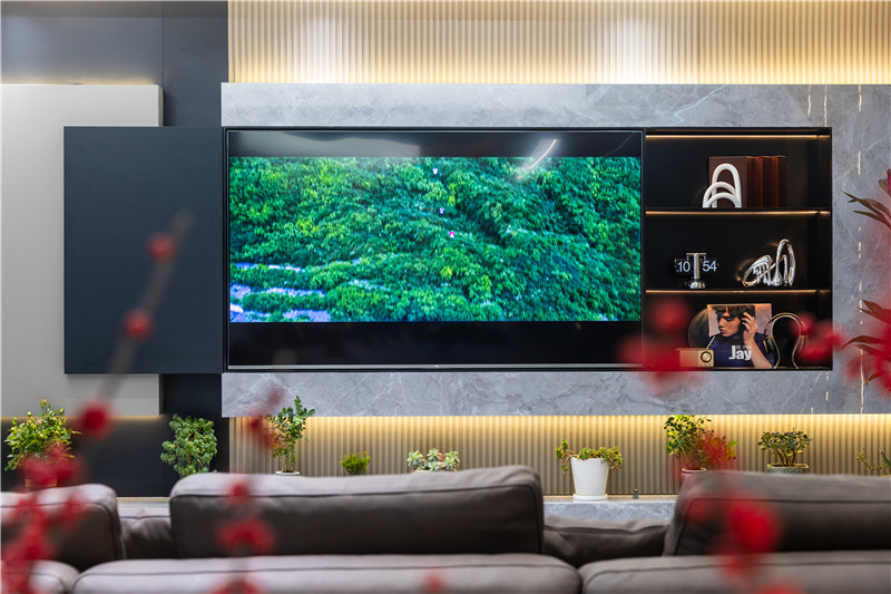 客廳高級構(gòu)造,以創(chuàng)意、新意展現(xiàn)定制魅力。整體開放式設(shè)計,以無主燈設(shè)計突顯空間氛圍感,氣質(zhì)顯露。