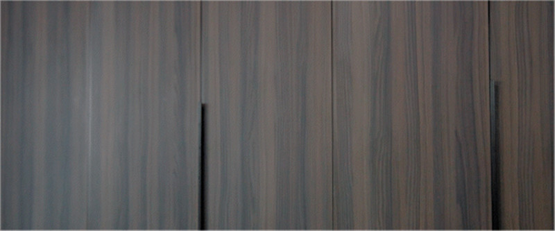 臥室側(cè)邊建立小型衣帽間,II型構(gòu)造有效利用狹長區(qū)域,木柜、玻璃柜、展示柜組合,以藏八露二原則展現(xiàn)美感,其柜金屬色長短拉手配合,好看且具備實用性。