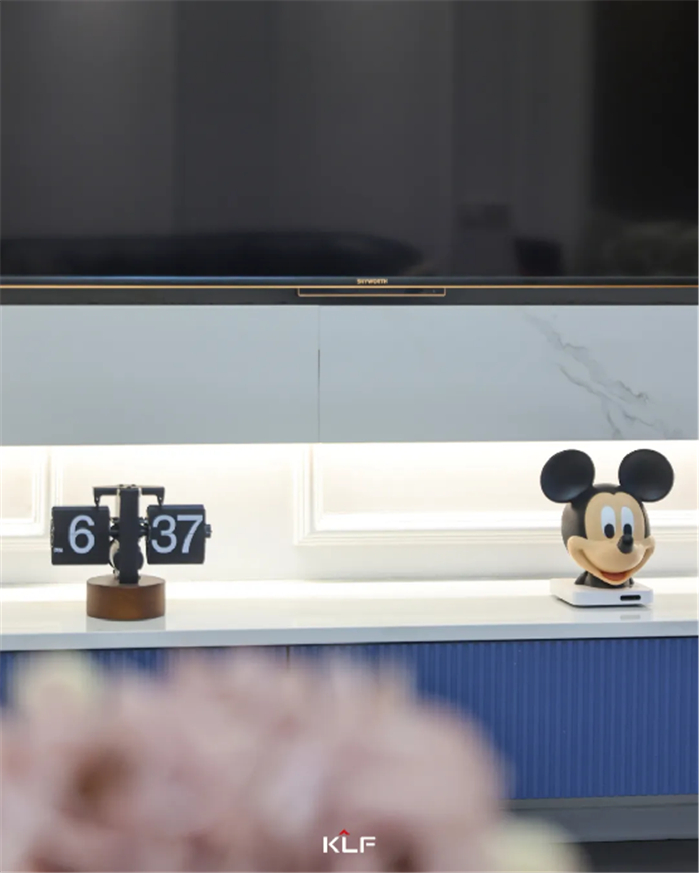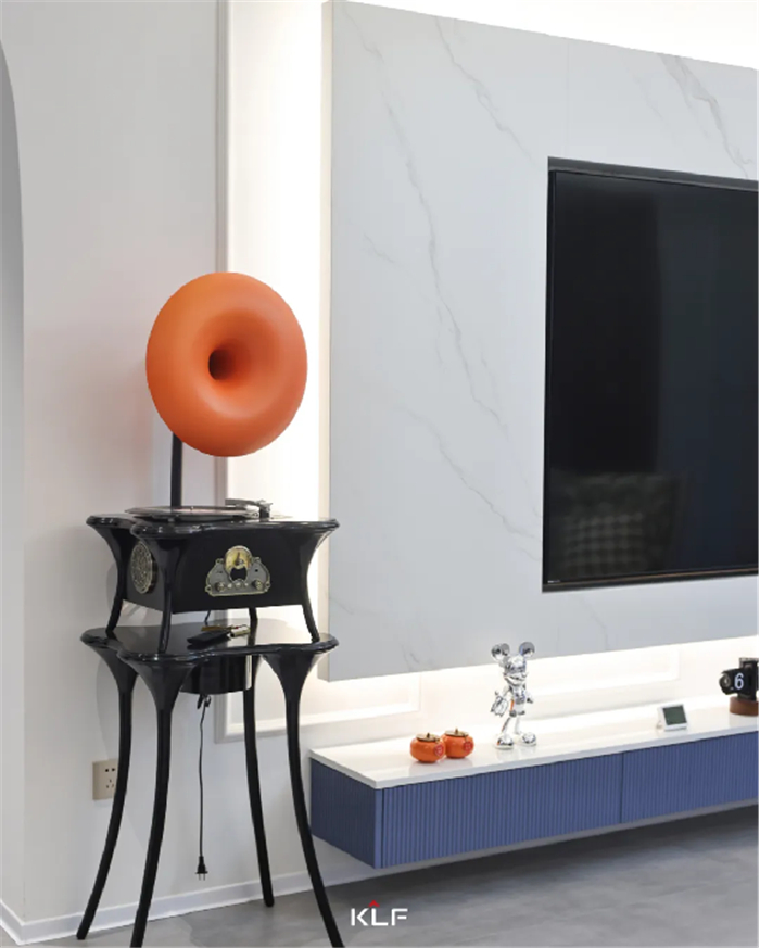 客廳法式雕線設(shè)計(jì)背景墻搭配巖板優(yōu)雅元素,精細(xì)考究的制作工藝突出了法式的標(biāo)志,更增添幾分浪漫情懷。