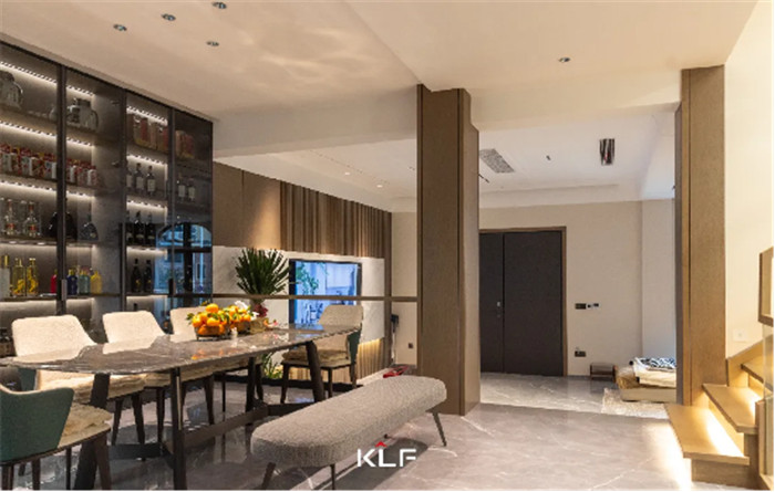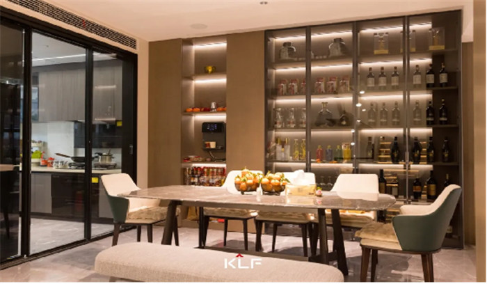 開放式層板帶燈透出輕奢奢品質(zhì)感,讓整體空間看起來更加立體,將開放收納格打造成收藏天地,輕松滿足縱橫四海,以酒為友的場景需求。