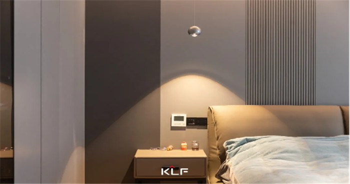 臥室設計整體風格溫馨舒適,空間色系更加溫和;無主燈設計使得屋內(nèi)簡約開闊;床頭背景墻拼接+格柵,時尚又充滿設計感。