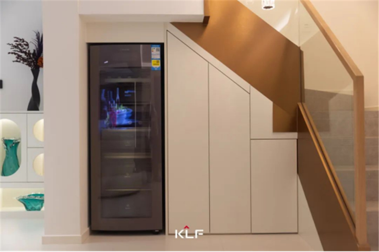 樓梯下方的空間,也被巧妙改造成超大容量的收納柜,滿足一家人多樣化的儲(chǔ)物需求,讓樓梯在承擔(dān)垂直交通功能的同時(shí),變身成為實(shí)用的儲(chǔ)物高手。