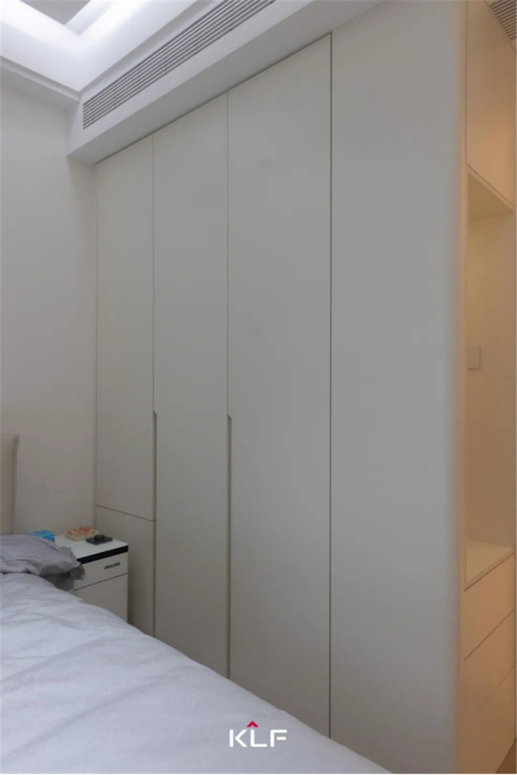 主臥自成一方靜謐天地,至簡淺淡,如云朵般輕盈,循著留白的韻腳酣眠其間。臨光的通透感蒙上一層朦朧濾鏡,呈現(xiàn)出寧靜無壓的舒適感。