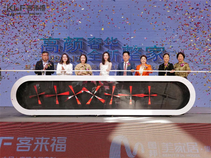 在舞臺開場之前,一場“明星逛店”直播給活動帶來了第一個小高潮??蛠砀<揖庸煞萦邢薰径麻L尹其宏先生、總裁魏金華女士帶品牌代言人王麗坤女士走進(jìn)展館,講解、分享客來福優(yōu)秀產(chǎn)品系列,期間直播間的家人朋友們也跟隨著腳步身臨其境,一起領(lǐng)略了這場家居盛宴。