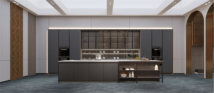 櫥柜+智能島臺(tái)的空間布局,既節(jié)省了空間,也優(yōu)化了家庭動(dòng)線。廚房一半采用了嵌入式柜體,考究的布局和純實(shí)木門讓餐廚空間簡(jiǎn)約大氣。島臺(tái)與烹飪區(qū)平行,空間明朗、清新自然。