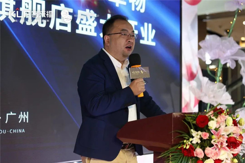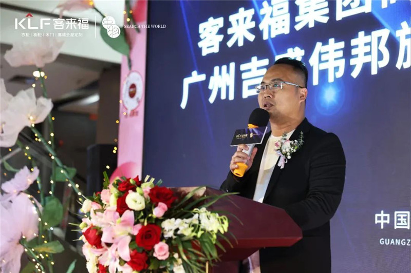 吉盛偉邦總經(jīng)理徐晉烈表示:感謝現(xiàn)場朋友的支持,相信客來福集團高定品牌 ·革物·廣州吉盛偉邦旗艦店的開業(yè)將迎來高質(zhì)量發(fā)展。