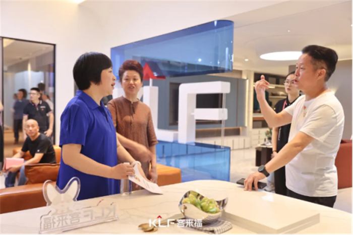 通過客來福工作人員現(xiàn)場講解展廳產(chǎn)品和品牌故事,表達(dá)了客來福不斷研發(fā)創(chuàng)新,用現(xiàn)代審美與核心設(shè)計手法,打造更懂中國家庭的定制家居品牌的堅定決心。