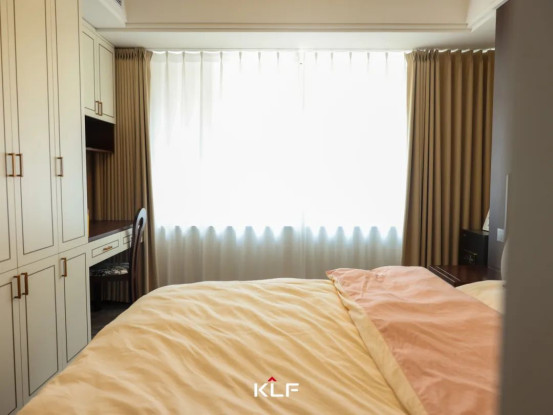 主臥整體色調(diào)偏清新淡雅,又點綴以少許深木色來強調(diào)新中式的穩(wěn)重感。家具造型古樸端莊,照明方式光而不耀,層次布局上講究“宜設(shè)而設(shè),精在體宜”,精妙的動線規(guī)劃讓每一處細節(jié)都內(nèi)斂克制,卻又精準回應(yīng)著居者的情感需求。