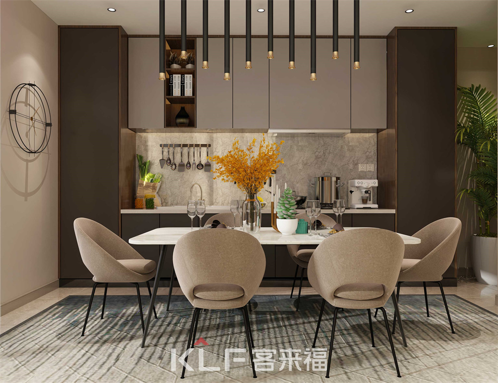 用餐時光是家中的溫馨時刻之一,而開放式的空間設(shè)計深受大眾歡迎。餐廳設(shè)計使用大量的米色,輔以精致的金屬裝飾、吊燈等,呈現(xiàn)了餐廳華麗的氛圍與格調(diào)。
