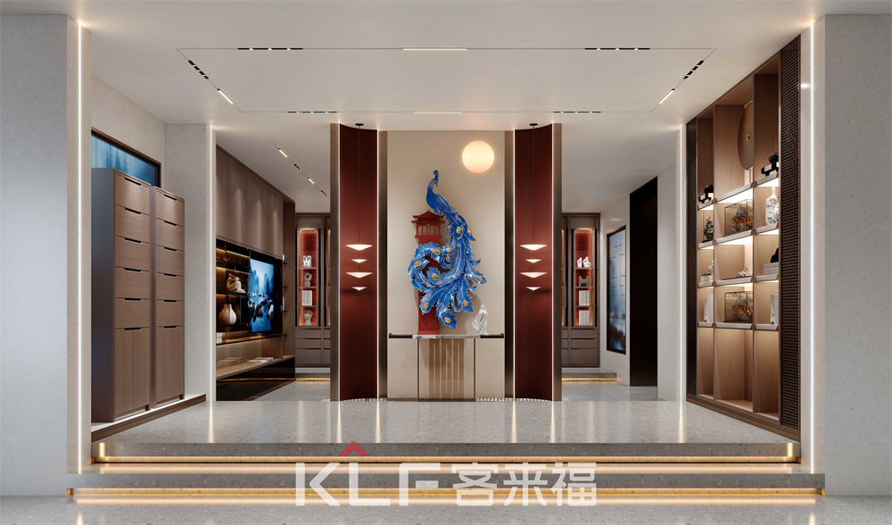 開放式門廳,彰顯出中國人“以和為貴”的傳統(tǒng)美德。一側封閉式貼墻柜體,加強家里的隱形存儲;一側開放式隔層設計,根據(jù)主人的審美DIY擺放;中間簡單隔墻,突顯出傳統(tǒng)的中式風韻。